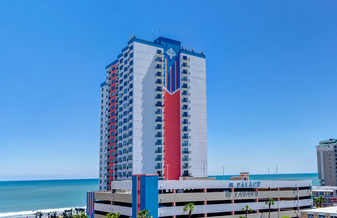 The centre of Myrtle Beach can be reached within a 25-minute walk, and natural attractions like the sandy parkland "Myrtle Beach State Park" are 3.5 km away. Sports fans can also visit the mayan - themed mini - Cancun Lagoon Golf, 950 m from the Palace Resort Myrtle Beach, and take their families to the Myrtle Beach SkyWheel, which is nearly a 10-minute drive away. Entertainment in the area includes the Springmaid Pier 2.2 km from the hotel. The accommodation has a prime location — 5 km from Myrtle Beach International airport.